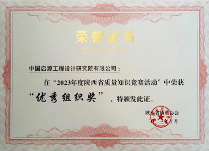 近日,陕西省质量协会公布了2023年质量知识竞赛获奖名单,中国启源荣获优秀组织奖。此外,中机国际李怡航荣获个人二等奖,启源设计任祎和工业水务陈凯霖荣获个人三等奖。