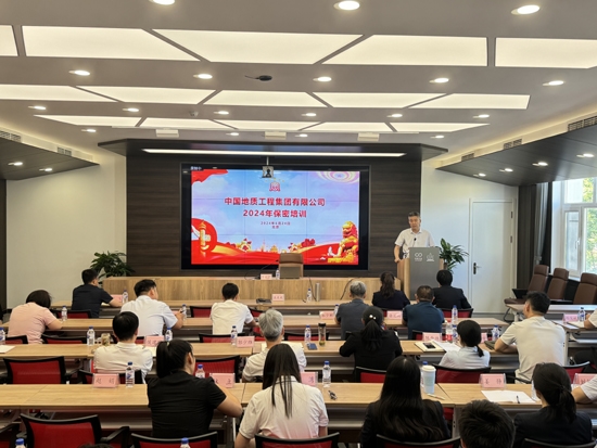 为进一步提升广大干部员工和涉密人员保密意识,加强保密管理工作,6月24日下午,中国地质组织开展2024年度保密工作培训。公司党委副书记、副总经理王庆祝出席培训并讲话,军工保密资格审查认证中心专家于天君进行专题授课。