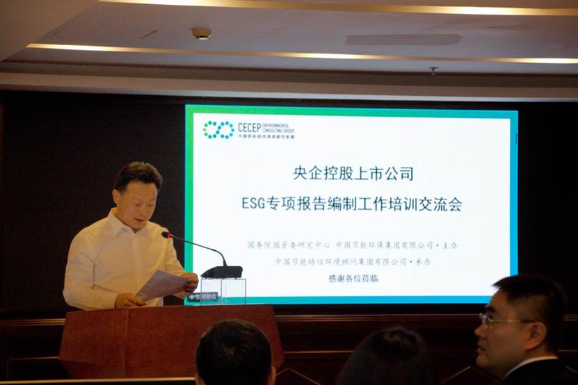 2023年6月7日下午,由国务院国资委研究中心和中国节能联合组织、由中节能皓信具体承办的--“央企控股上市公司ESG专项报告编制工作培训交流会”在北京新时代大厦成功举行,数十家央企控股上市公司近百名ESG工作负责人受邀参加会议。集团公司党委常委、副总经理曹华斌出席会议并致辞,国资委研究中心国际合作处戚悦处长代表出席并分享研究成果。香港公司副总经理杨兴主持会议。