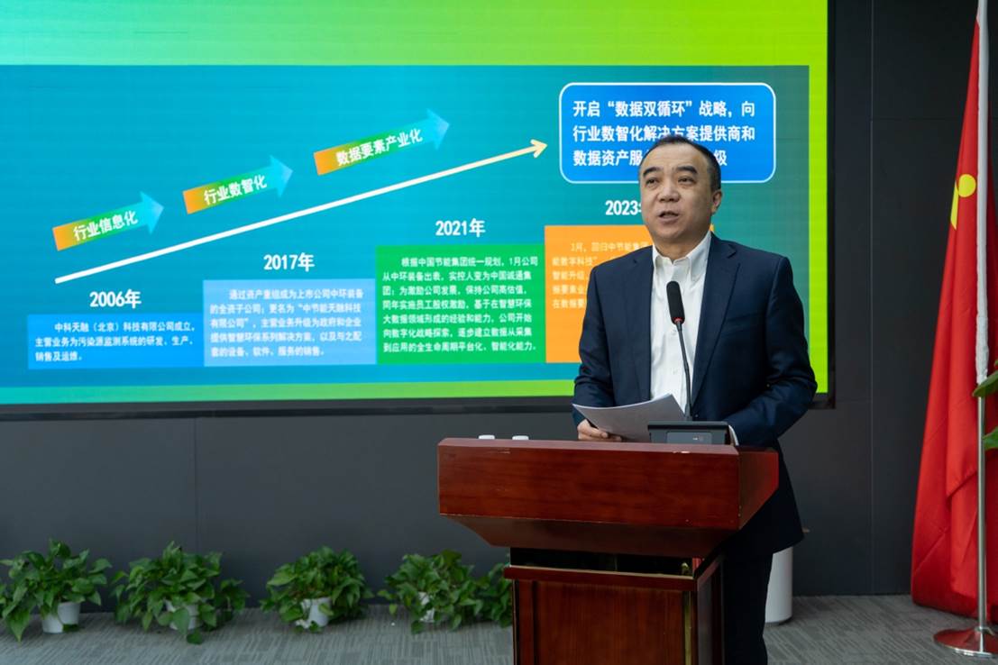 节能数科公司总经理张栩在发布会中对公司“数据双循环”发展战略进行了介绍,并宣布公司更名为“中节能数字科技有限公司”。张栩表示,全新的品牌承载着中国节能赋予公司的新使命,公司将积极响应国家战略,立足“国家所需、产业所趋、当前所急、央企所能”,以多年行业积淀为基石,以“大数据+AI+行业能力”的技术及产品为支撑,围绕行业数智化、数据要素产业化两大发展方向,聚焦中国节能主业,发挥数据要素乘数效应,实施“数据双循环”发展战略,加快构建“共建共享、互补互促、跨界融合”的数字生态,并推出“数据双循环BOS(建设-运营-共享)”全新商业模式,打造中国节能特色的新质生产力,成为节能环保大健康领域领先的数智化解决方案提供商和数据资产化服务商。
