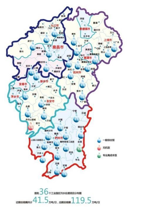 为江西全省工业园区提供污水处理打包服务,目前投入运营和在建污水处理项目37个。